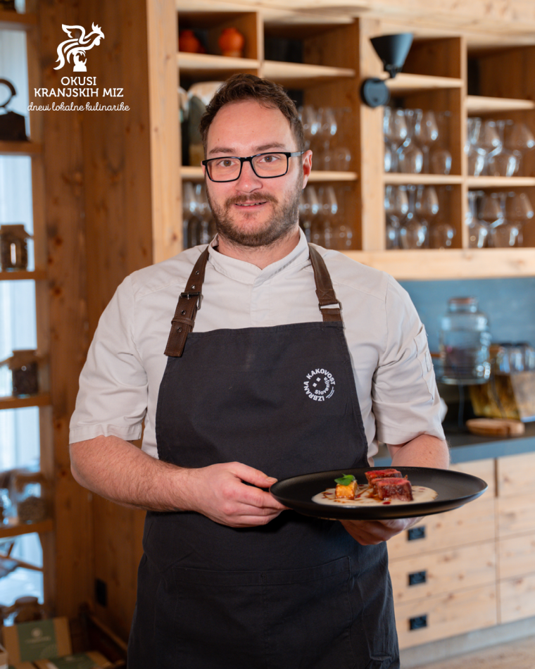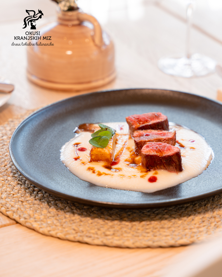 → Lokalni dobavitelji: maslo z Ekološke kmetije Pr’ Vernk (Zgornje Jezersko), pira z Ankove kmetije (Zgornje Jezersko), divjačina Nimrod (Škofja Loka), med Čebelarstva Kokl (Potoče) in smetana Mlekarstva Podjed (Olševek).